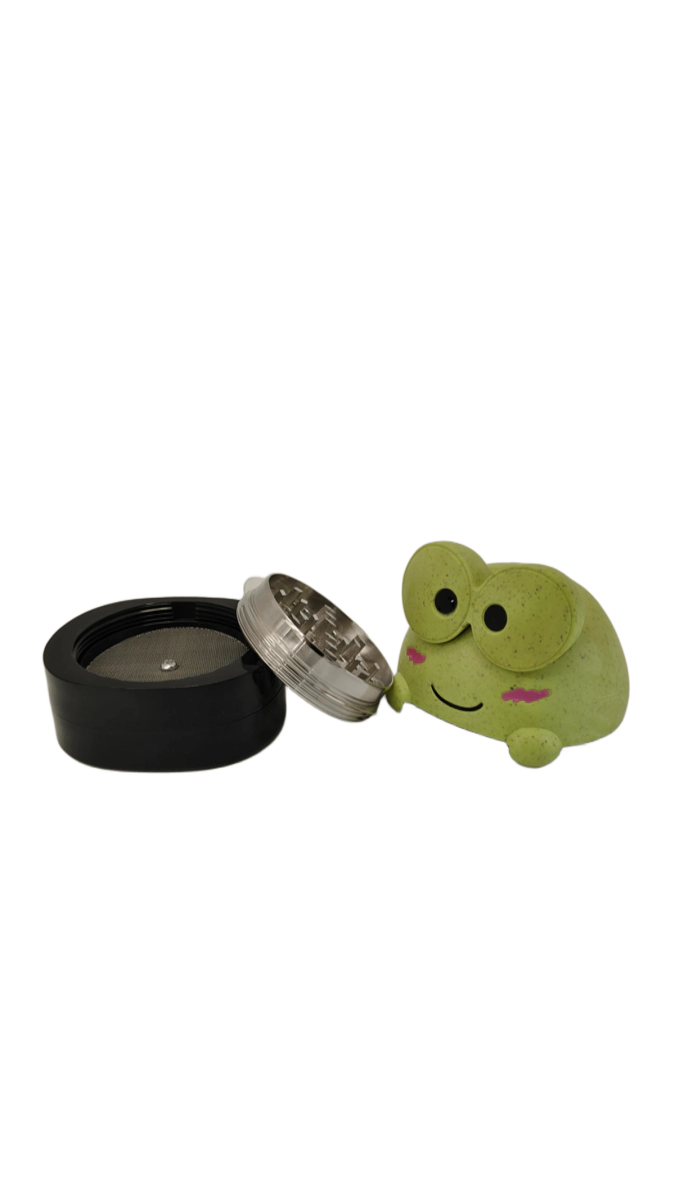 Picador de 4 partes con diseño divertido tipo ranita, ideal para quienes buscan un accesorio funcional con un toque original. Su estructura robusta permite un triturado parejo y eficiente, mientras que su formato compacto lo hace práctico para el uso diario.
